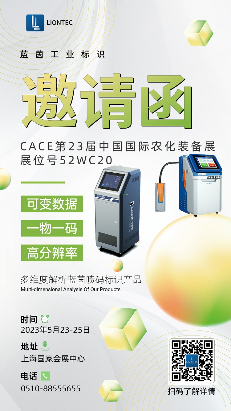2023農(nóng)化裝備及植保器械展覽會(huì),5月23---25相約上海,上海國(guó)家會(huì)展中心,52WC20展位,噴碼機(jī)廠家藍(lán)茵與您不見(jiàn)不散!